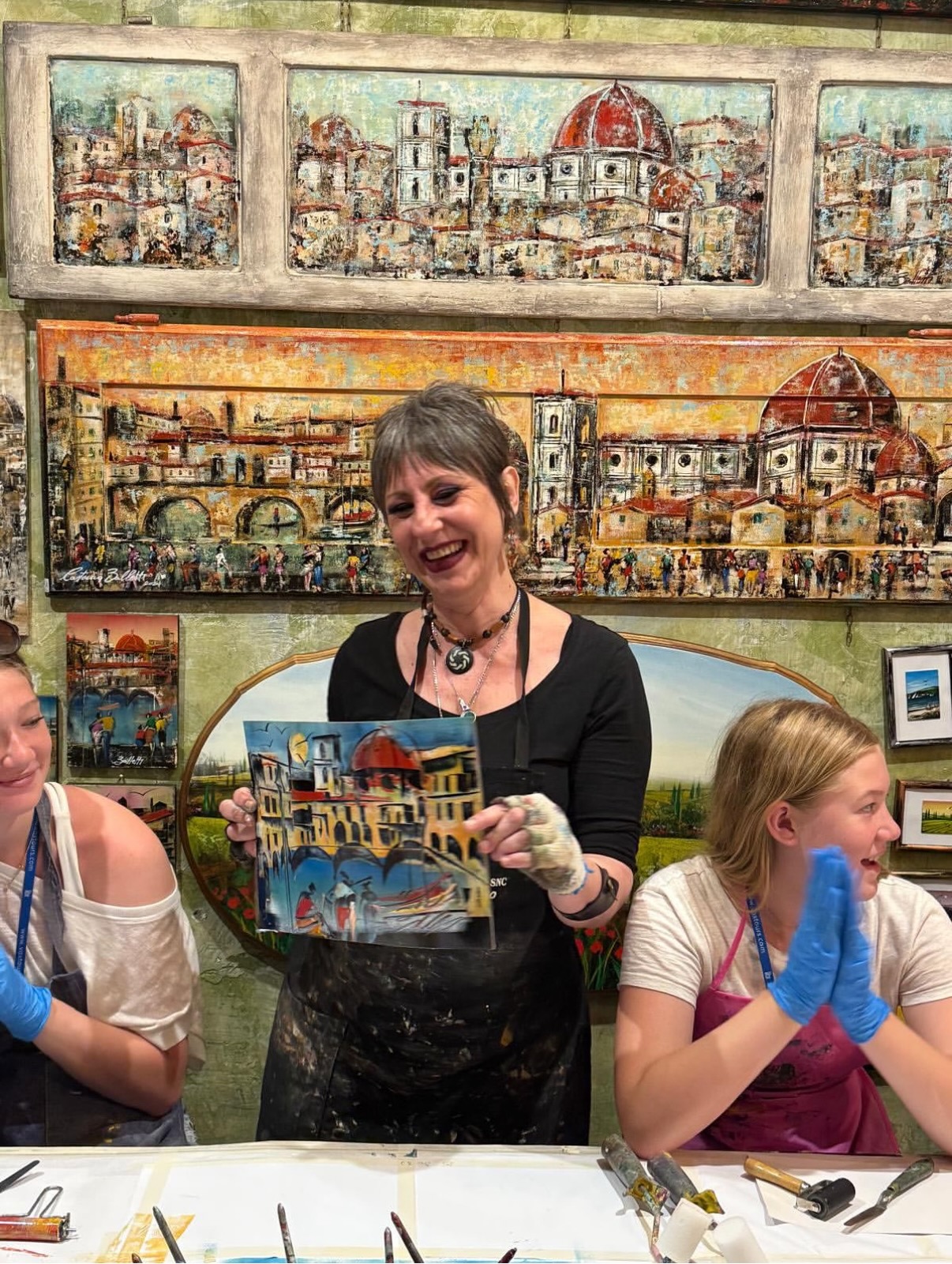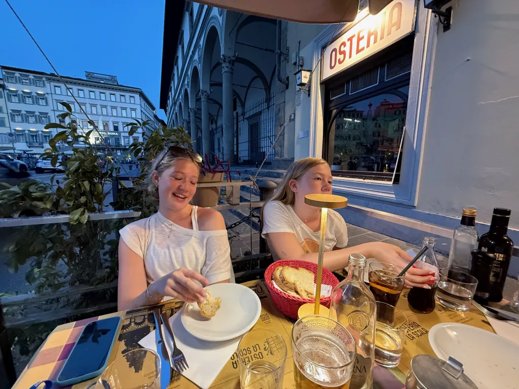 Caterina taught the children how to paint in her style, the parents had drinks and talked and my entire family absolutely fell in love with Caterina, her energy, passion, humor, I hope to some day meet her again! If you are in Florence, please pay her a visit and give her an instagram follow, I linked it in her name above. We wrapped this excellent day up with a street side dinner and a well earned night of rest.